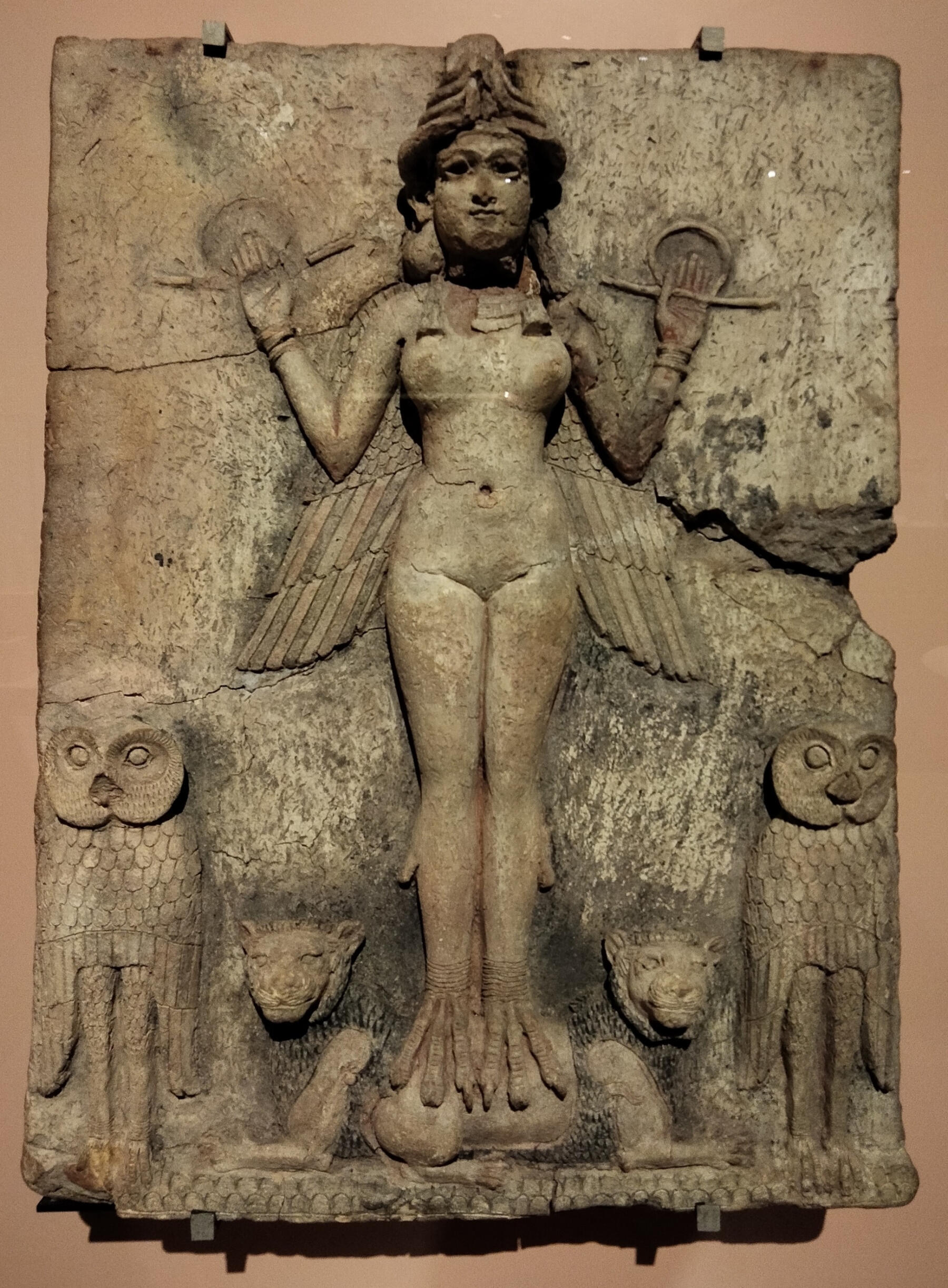 Image: Representation of Inanna/Ishtar at the exhibition 'Venerated and Feared' at Caixa Forum in Zargoza (Spain) December 2024 to March 2025. Plaque of baked straw-tempered clay. The goddess was originally painted red. Loaned for the exhibition by The Trustees of the British Museum.